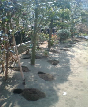 今日は、寒超えで下穴を掘って肥料を入れていきます。