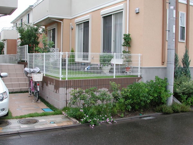 お庭外観[施工前]施工前はどこにでもあるアルミフェンスが張ってありました -