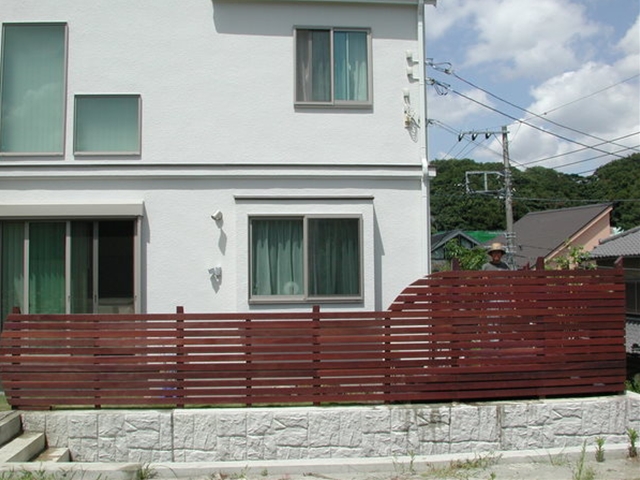 ウッドフェンス[施工後]一部には曲線を付けています -