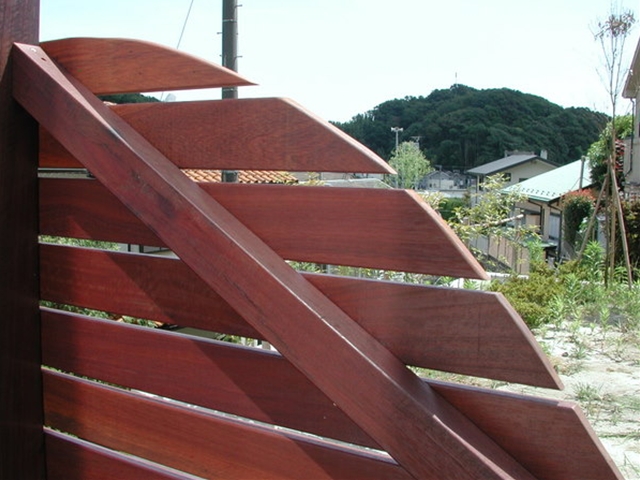 ウッドフェンス[施工後]実際かなりの距離があります。シンプルに美しいラインがでるように作っています -