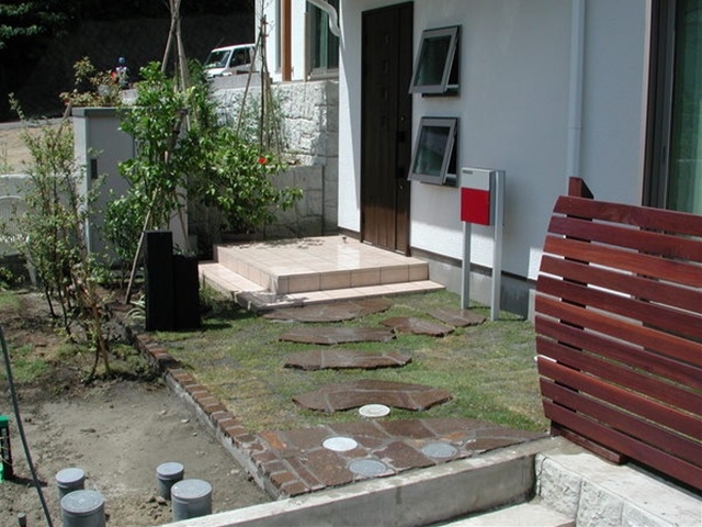 玄関への飛び石[施工後]ポストの前にも飛び石を -