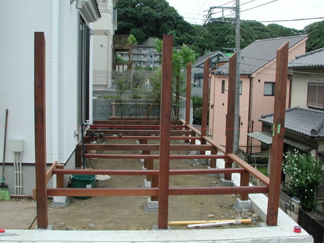 ウッドデッキとウッドフェンス[施工中]ここにデッキとフェンスを作っていきます -