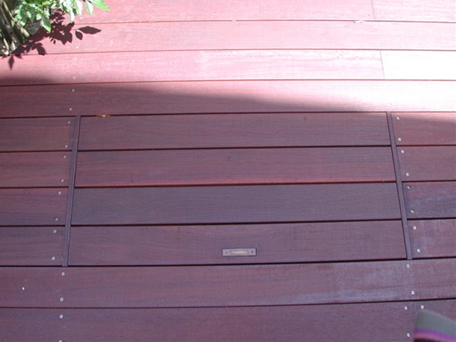 ウッドデッキ内の収納[施工後]ウッドデッキの一部に蓋をつけ収納ができるようになっています -