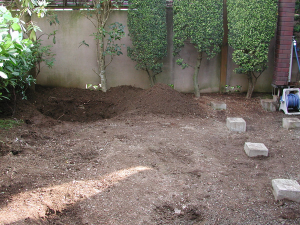 デッキの解体[施工中]解体完了。奥の穴にはサルスベリを植えます。 -