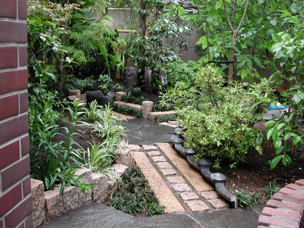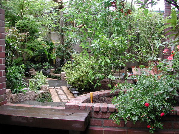 瓦の土留め[施工後]小道の脇の土留めには瓦を用いてアクセントを付けています。 -