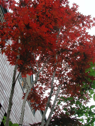 ノムラカエデ[施工後]緑色の木々の中で赤色が映えるノムラカエデ -