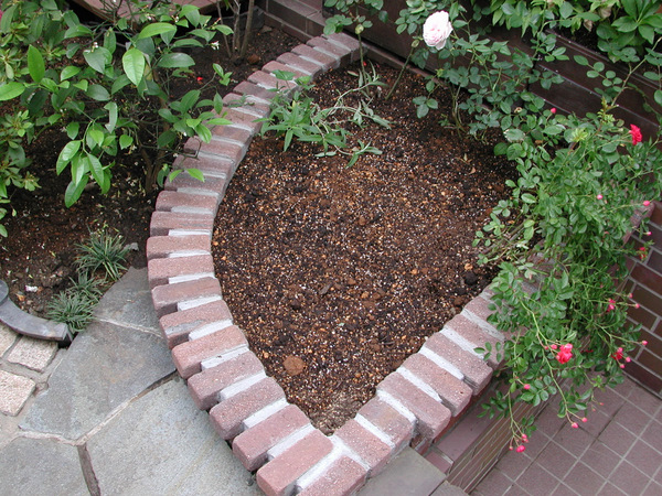 花壇[施工後]家の色と合わせた色のレンガで花壇を設けています。 -